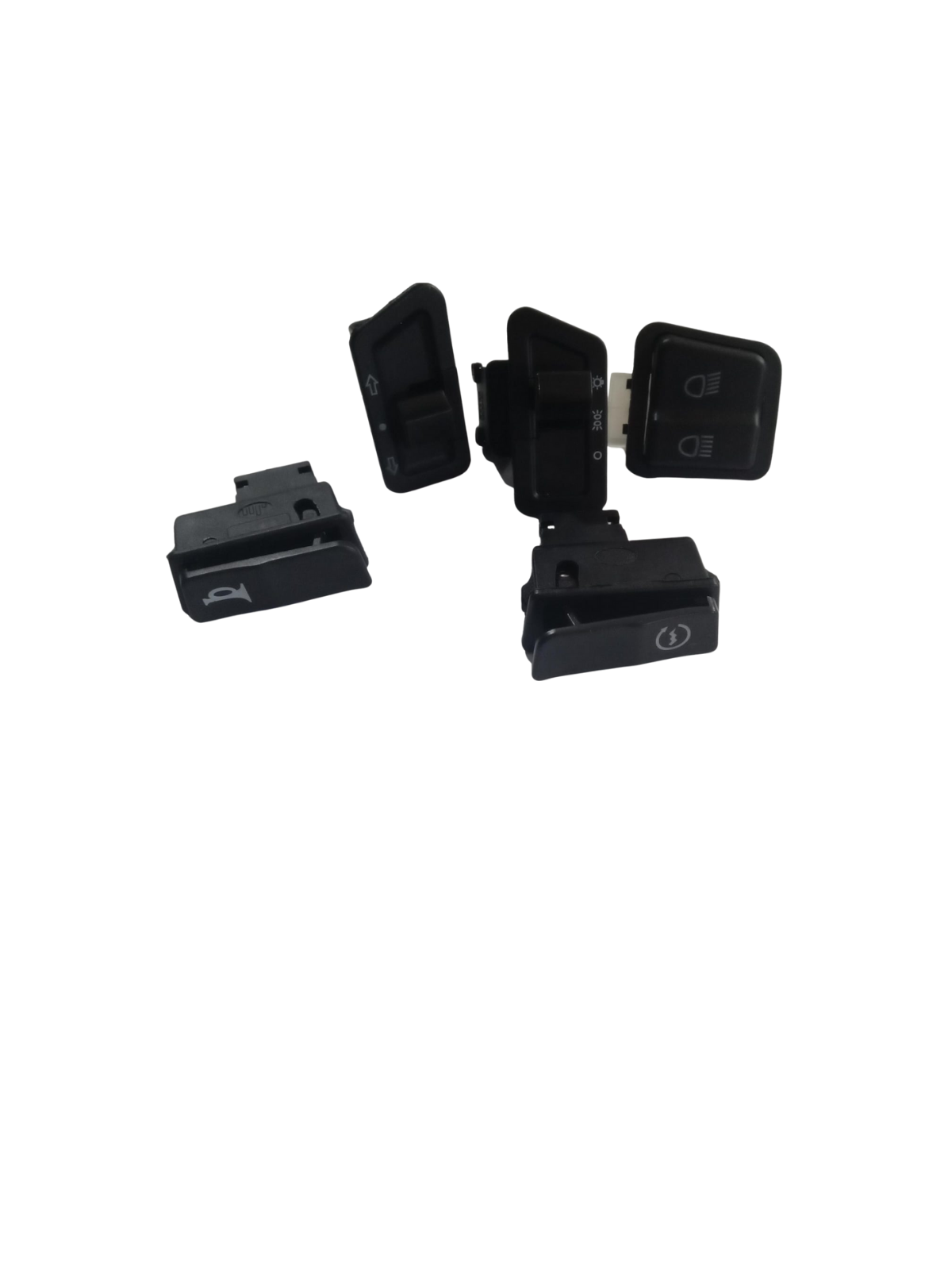 Old Model All Switch is a complete handlebar switch assembly specially designed for older-model electric scooters and electric bikes. This switch unit combines all essential riding controls—horn, indicators, headlight, and power/drive switch—into a single compact system.